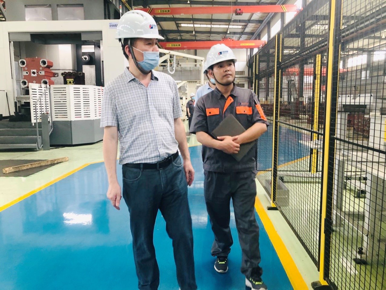 祝慧明一行實地察看了德清申達公司裝配車間、涂裝車間和金加工車間,就申達公司車間管理、質量管理、體系建設等情況進行了現場交流和指導。