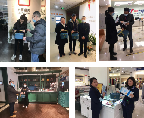 面對節前國內疫情點狀爆發的嚴峻態勢,為做好疫情常態化防控工作,商業公司積極履行國企社會擔當,堅持客戶至上服務宗旨,圍繞“防疫、實用”的原則,擬定了詳細的承租戶慰問方案,采購疫情防控物資,開展了“抗擊疫情再鼓勁,走訪慰問暖人心”的節前客戶走訪慰問活動,為管控物業承租戶送上防疫物資和新年祝福。截至目前,共對60余家承租戶贈送防疫禮包近百份,受到承租戶一致好評。