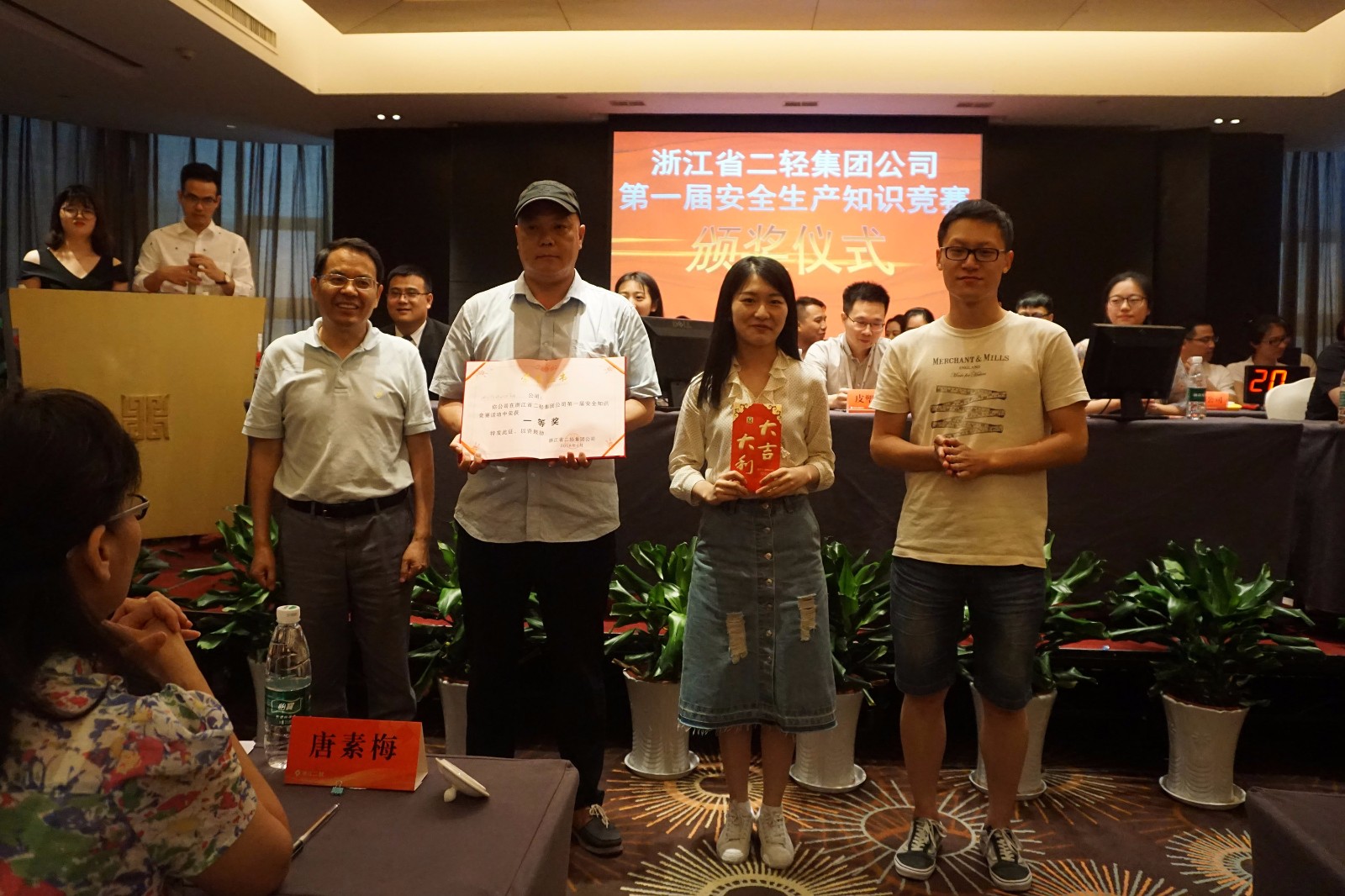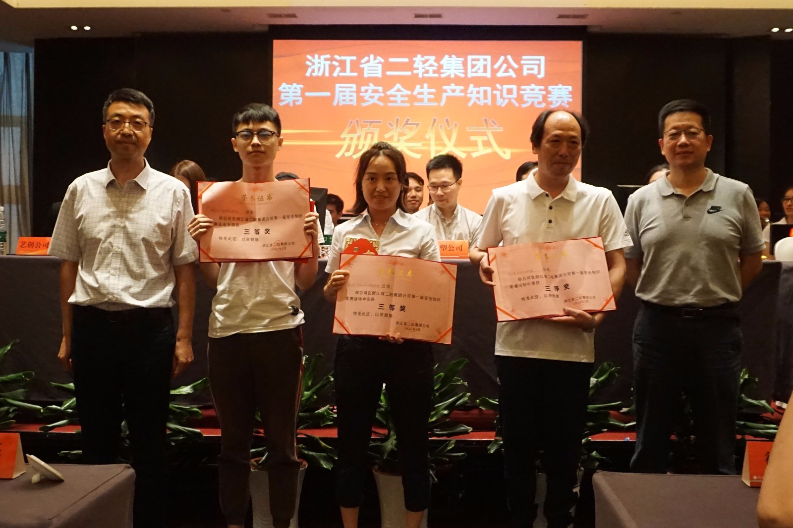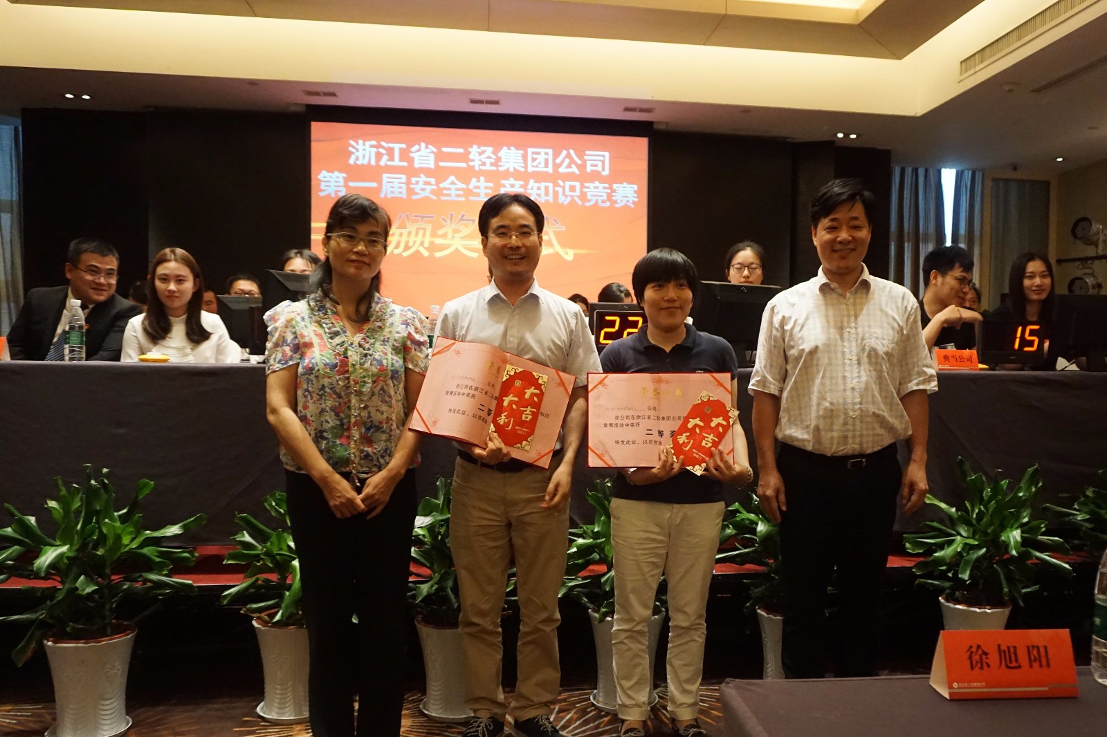 為認真貫徹落實省委省政府、省國資委關于開展“安全生產月”活動的相關文件精神及要求,進一步推進集團公司安全工作開展,強化安全意識,鞏固安全文化建設,6月28日下午,集團公司第一屆主題為“安全二輕”的安全知識競賽在浙江飯店舉辦。省國資委政策法規處處長唐素梅、副處長厲振松及集團公司副總經理、分管安全工作領導徐旭陽致開幕詞,集團公司副總經理吳敏、黨委副書記張城及各部室企業主要負責人、安全工作相關負責人、員工等50余人蒞臨現場觀摩。
