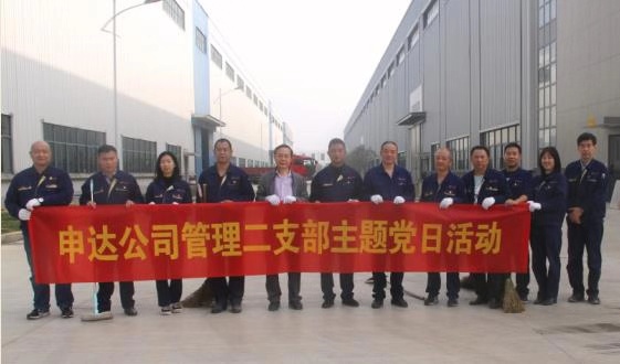 申達(dá)公司管一、管二支部是集團(tuán)公司黨委實(shí)施“五五項(xiàng)目”計(jì)劃的載體,作為聯(lián)系人,集團(tuán)公司黨委書記、董事長(zhǎng)虞岳明,黨委委員、紀(jì)委書記趙秉凰早早來到申達(dá)新廠區(qū),與兩個(gè)支部的黨員共同參加義務(wù)勞動(dòng)?;顒?dòng)開始前,虞岳明向參加活動(dòng)的全體黨員以及申達(dá)班子成員作了動(dòng)員講話。他指出: