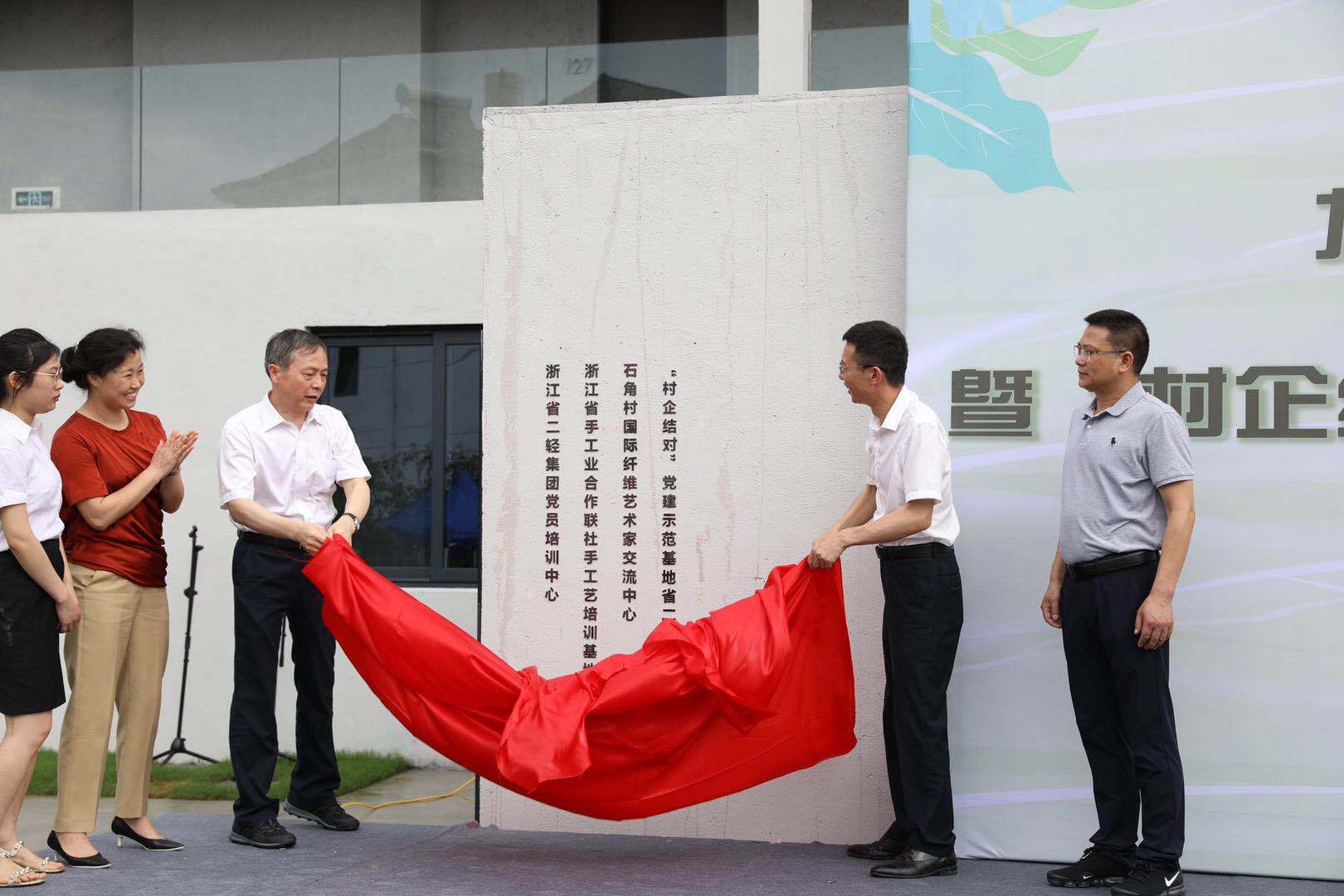啟動(dòng)儀式上,相關(guān)領(lǐng)導(dǎo)為龍南黨建聯(lián)盟授牌,并分別為省二輕集團(tuán)黨員培訓(xùn)中心、浙江省手工業(yè)合作聯(lián)社手工藝培訓(xùn)基地、石角村國(guó)際纖維藝術(shù)家交流中心、“村企結(jié)對(duì)”黨建示范基地以及消薄項(xiàng)目聽澗·靈山江民宿揭牌。