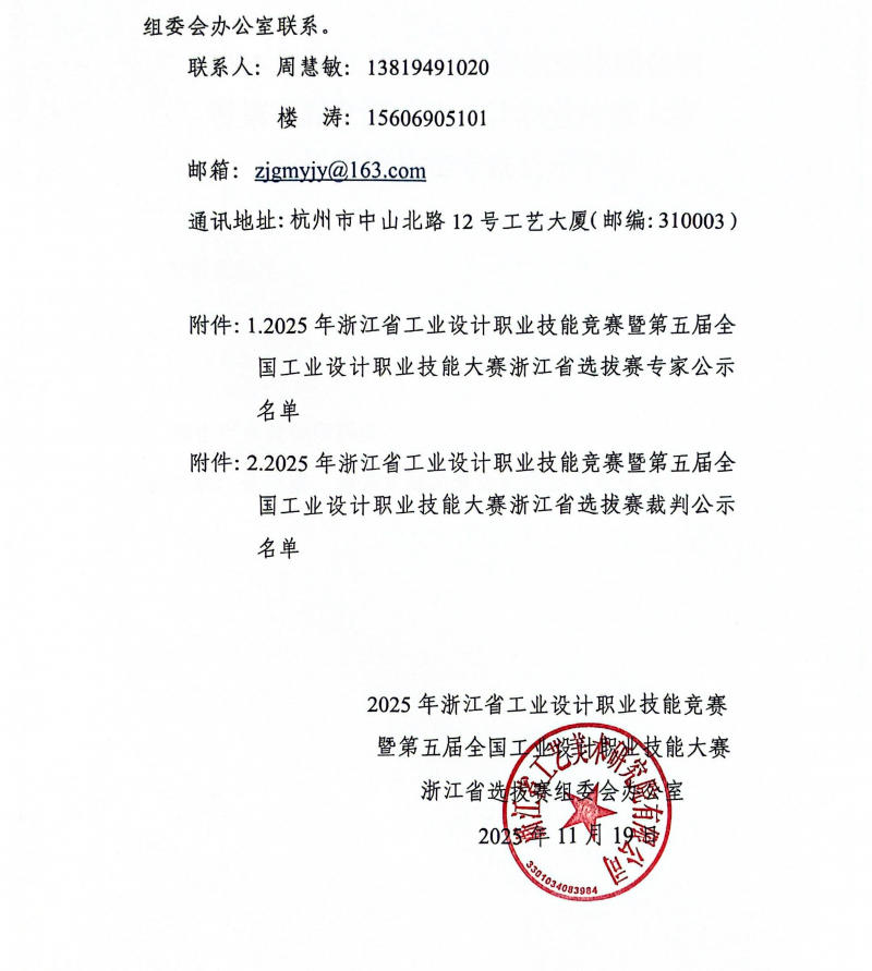 【職業(yè)技能大賽】關(guān)于公布2025年浙江省工業(yè)設(shè)計(jì)職業(yè)技能競賽暨第五屆全國工業(yè)設(shè)計(jì)職業(yè)技能大賽浙江選拔賽各賽項(xiàng)舉辦時間、地點(diǎn)的通知